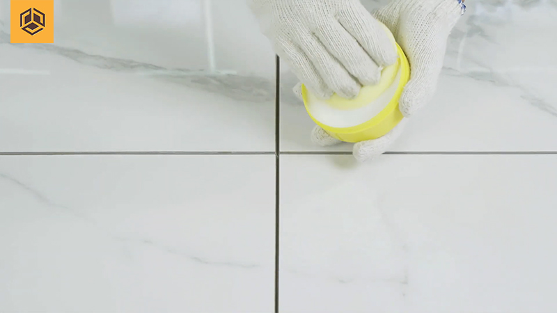 Thoa đều sáp chuyên dụng lên bề mặt ron gạch.