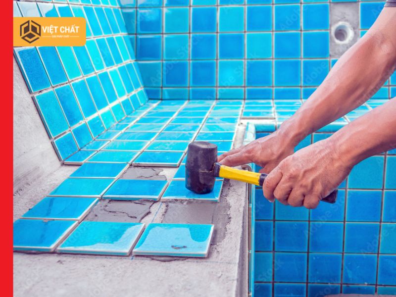 Với kinh nghiệm cung cấp giải pháp vật liệu xây dựng cho nhiều công trình dân dụng và công nghiệp, Việt Chất nhận thấy rằng phần lớn sự cố hồ bơi phát sinh đều xuất phát từ việc thi công không đúng kỹ thuật hoặc sử dụng keo dán gạch không phù hợp với môi trường ngâm nước liên tục. Chính vì vậy, bài viết “Hướng dẫn thi công dán gạch hồ bơi Mosaic chuẩn kỹ thuật, bền lâu theo thời gian” được xây dựng nhằm chia sẻ quy trình thi công chi tiết, các lưu ý quan trọng và kinh nghiệm thực tế, giúp thợ thi công, nhà thầu và chủ đầu tư hạn chế tối đa rủi ro, đảm bảo công trình hồ bơi đạt độ bền, tính thẩm mỹ và tuổi thọ lâu dài.