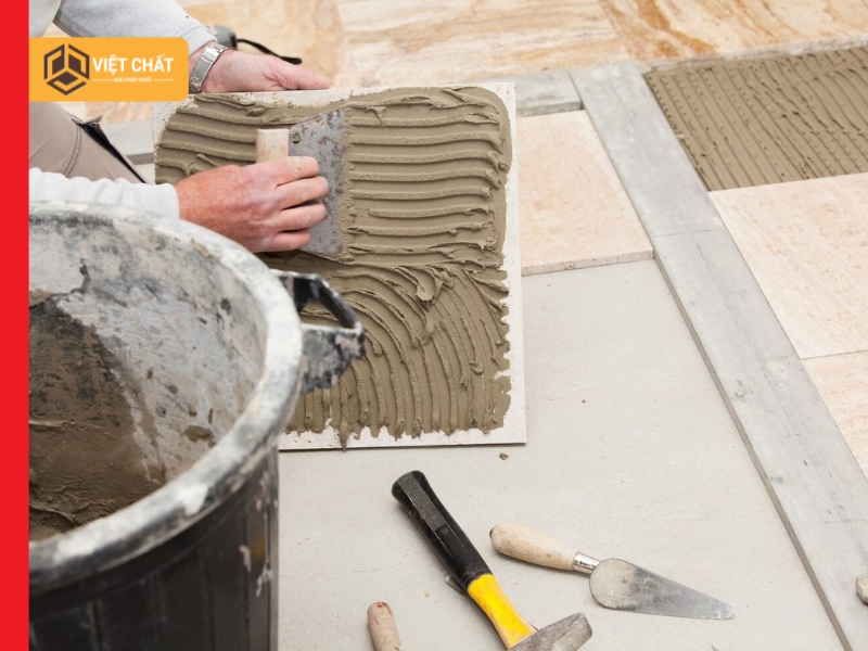 Thi công keo dán gạch có nên pha phụ gia không? Kho Việt Chất khuyến nghị không cần pha thêm, tránh làm giảm độ bám dính và tuổi thọ công trình.