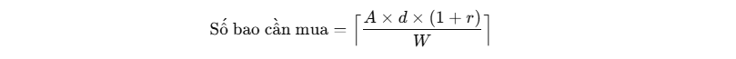 ⌈⋅⌉ = làm tròn lên (ceil), vì phải mua nguyên bao