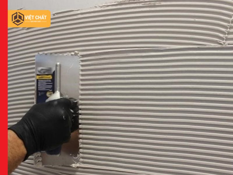 Việc sử dụng keo dán gạch chuyên dụng thay cho vữa xi măng hoặc hồ dầu truyền thống là yêu cầu bắt buộc khi thi công gạch Mosaic hồ bơi. Keo dán gạch giúp tăng cường độ bám dính, hạn chế bong tróc, đồng thời đảm bảo tính thẩm mỹ và độ bền lâu dài cho công trình trong điều kiện tiếp xúc nước và hóa chất thường xuyên.