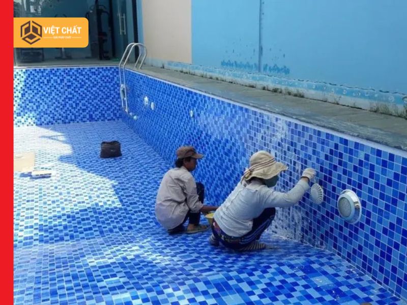 Với kinh nghiệm cung cấp giải pháp vật liệu xây dựng cho nhiều công trình dân dụng và công nghiệp, Việt Chất nhận thấy rằng phần lớn sự cố hồ bơi phát sinh đều xuất phát từ việc thi công không đúng kỹ thuật hoặc sử dụng keo dán gạch không phù hợp với môi trường ngâm nước liên tục. Chính vì vậy, bài viết “Hướng dẫn thi công dán gạch hồ bơi Mosaic chuẩn kỹ thuật, bền lâu theo thời gian” được xây dựng nhằm chia sẻ quy trình thi công chi tiết, các lưu ý quan trọng và kinh nghiệm thực tế, giúp thợ thi công, nhà thầu và chủ đầu tư hạn chế tối đa rủi ro, đảm bảo công trình hồ bơi đạt độ bền, tính thẩm mỹ và tuổi thọ lâu dài.