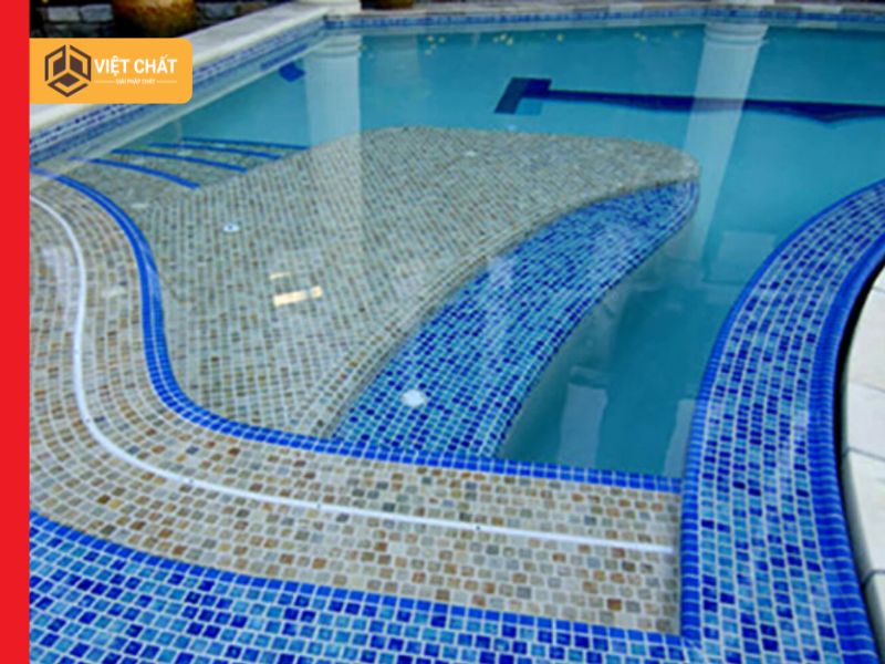 Trong thi công hồ bơi, gạch Mosaic là dòng vật liệu được sử dụng phổ biến nhờ khả năng đáp ứng tốt các yêu cầu khắt khe của môi trường ngâm nước liên tục. Loại gạch này sở hữu nhiều ưu điểm nổi bật như chống thấm hiệu quả, kháng ăn mòn hóa chất, hạn chế rong rêu, chống trơn trượt, đồng thời đảm bảo tính thẩm mỹ cao cho không gian hồ bơi.